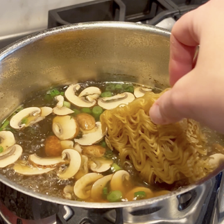 ≥≥ Once it comes back to a boil after a few minutes, drop your noodles in and cook until they are al dente. Pull off the heat and serve in a bowl and top with your toppings!